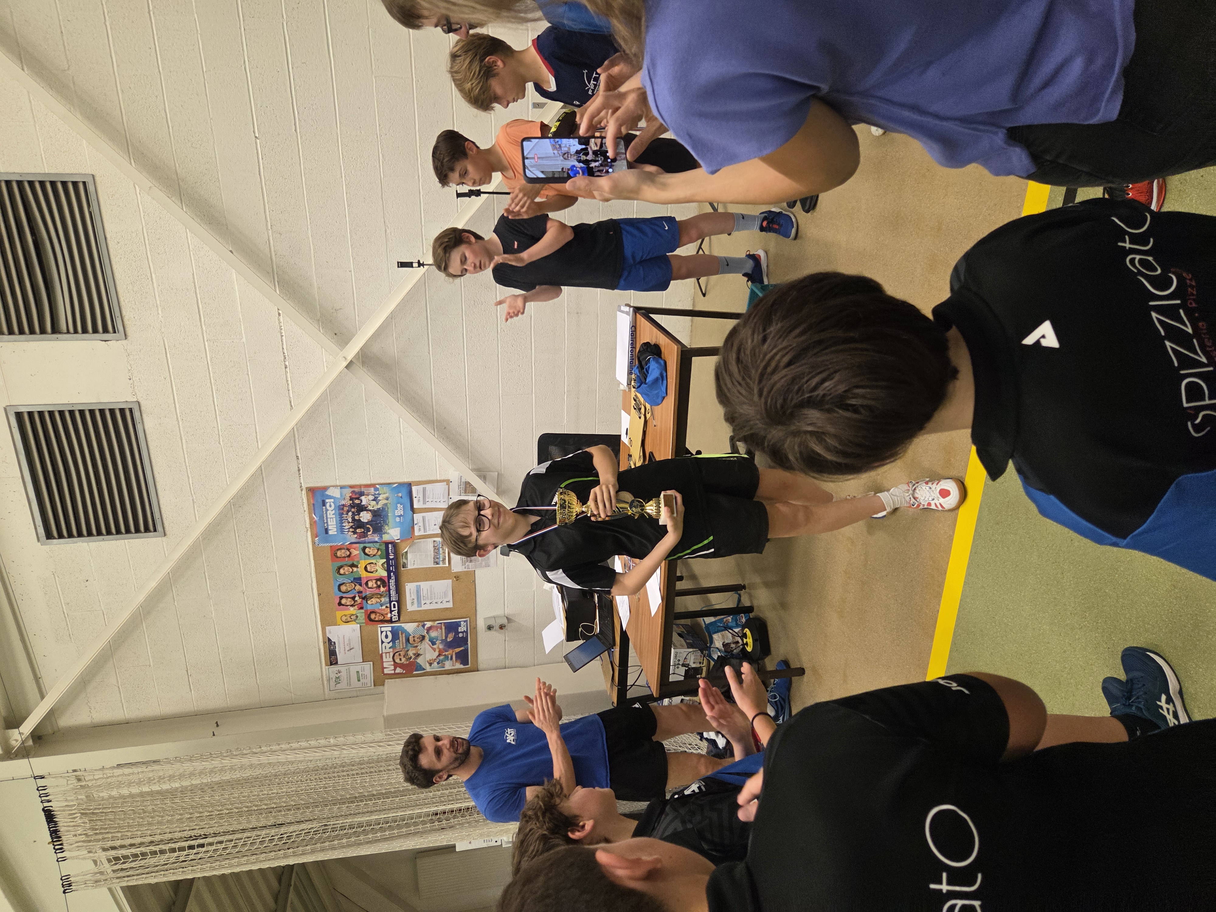 La finale a tenu toutes ses promesses, malgré le stress de la part des deux joueurs (et du public) ! Premier set Noam, deuxième et troisième Nathan, quatrième Noam et finalement cinquième Nathan ! Victoire de Nathan qui témoigne de ses progrès réalisés sur la saison.